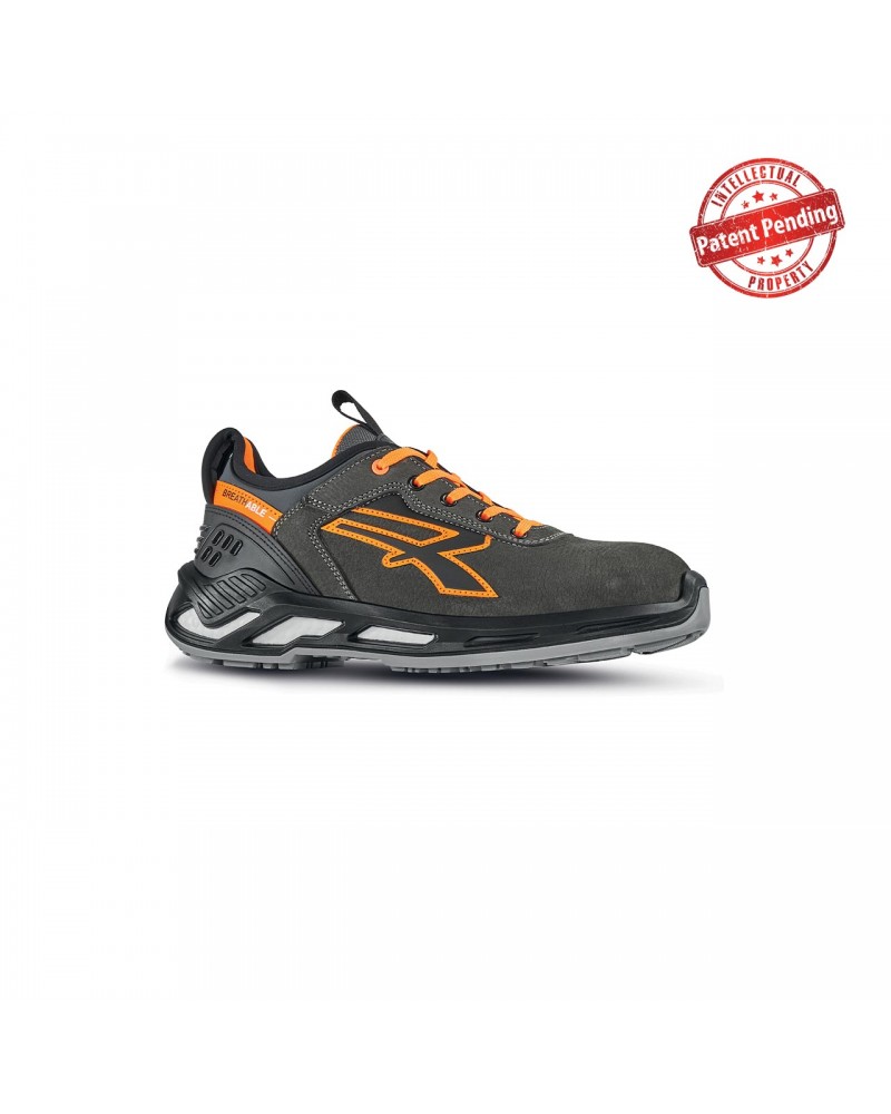 Scarpe antinfortunistiche basse, leggere e comode U-Power della linea Red 360, con tomaia in pelle nabuk naturale bottalato, idrorepellente, collarino con tessuto in fibra Lycra® e tallonetta anti-shock, puntale in alluminio, antiperforazione, antiscivolo e suola PU/PU infinergy.